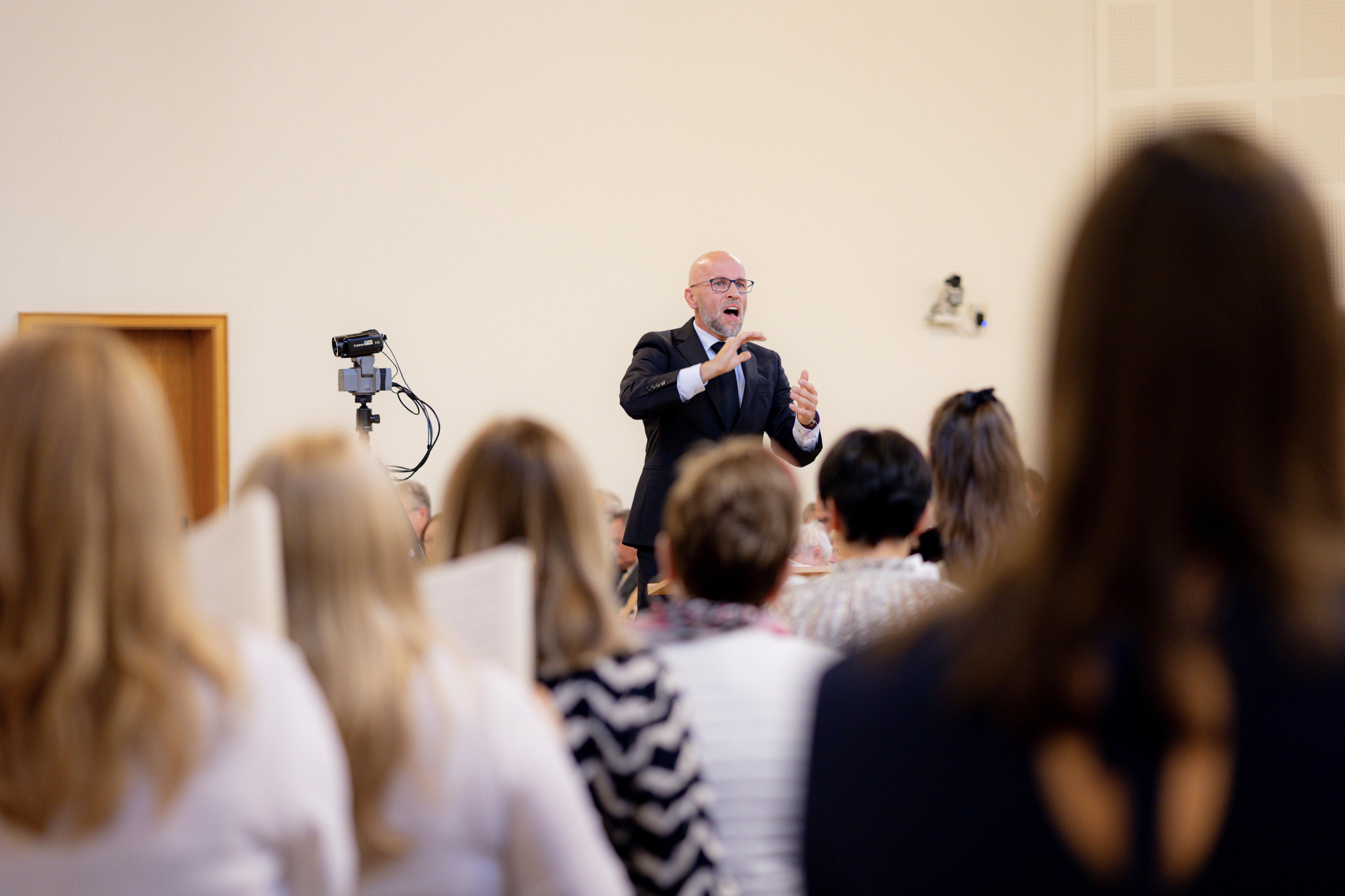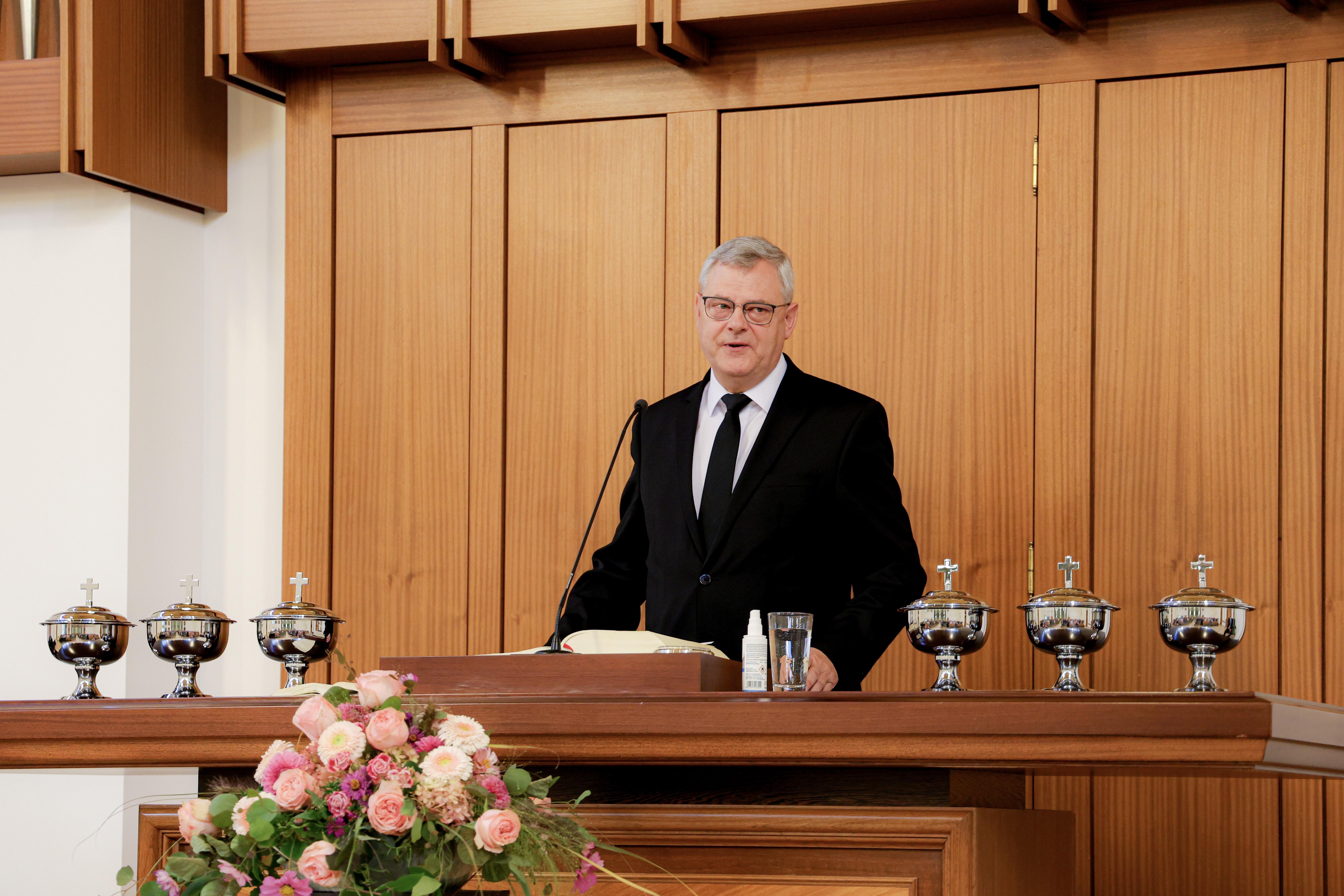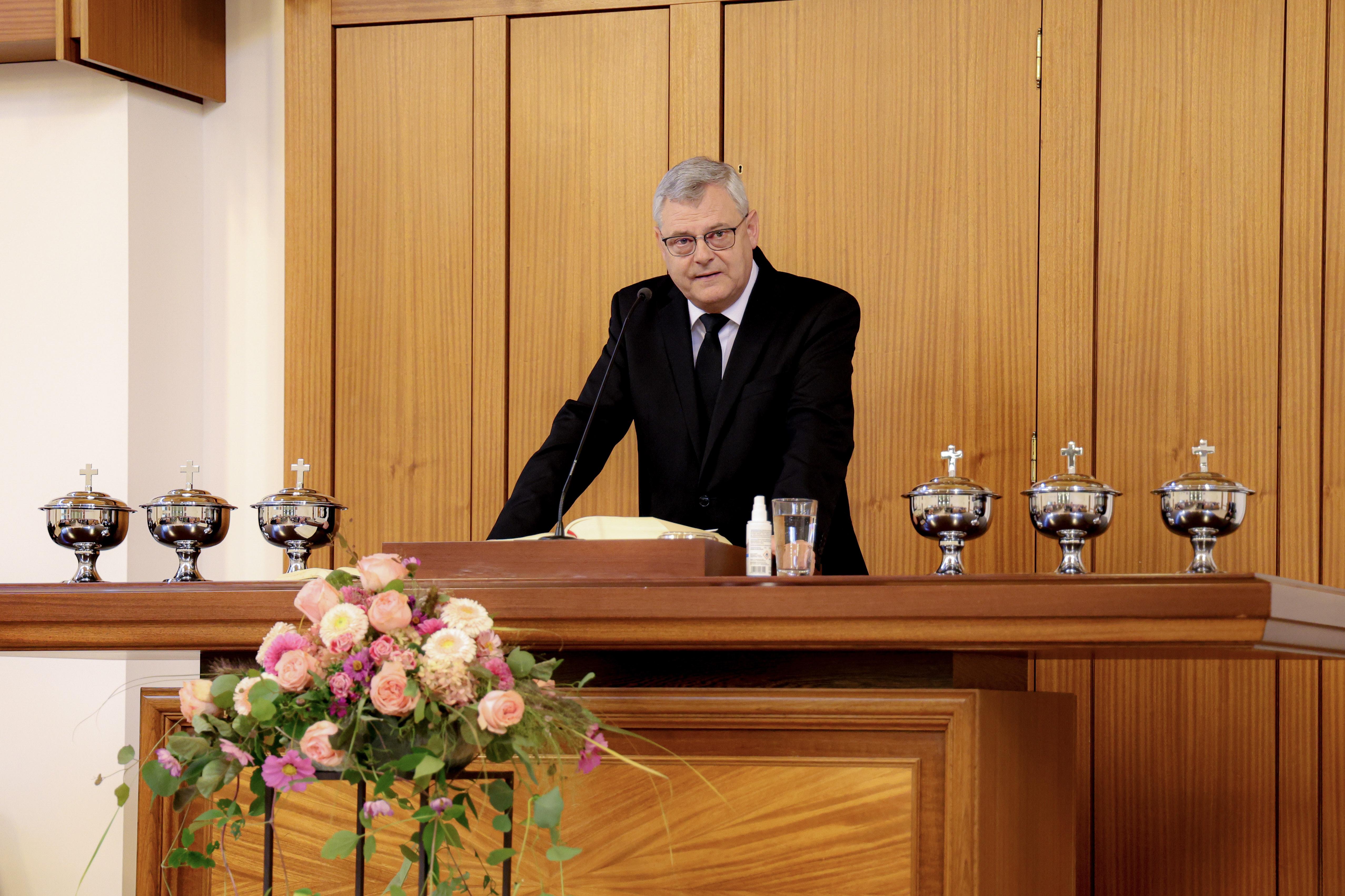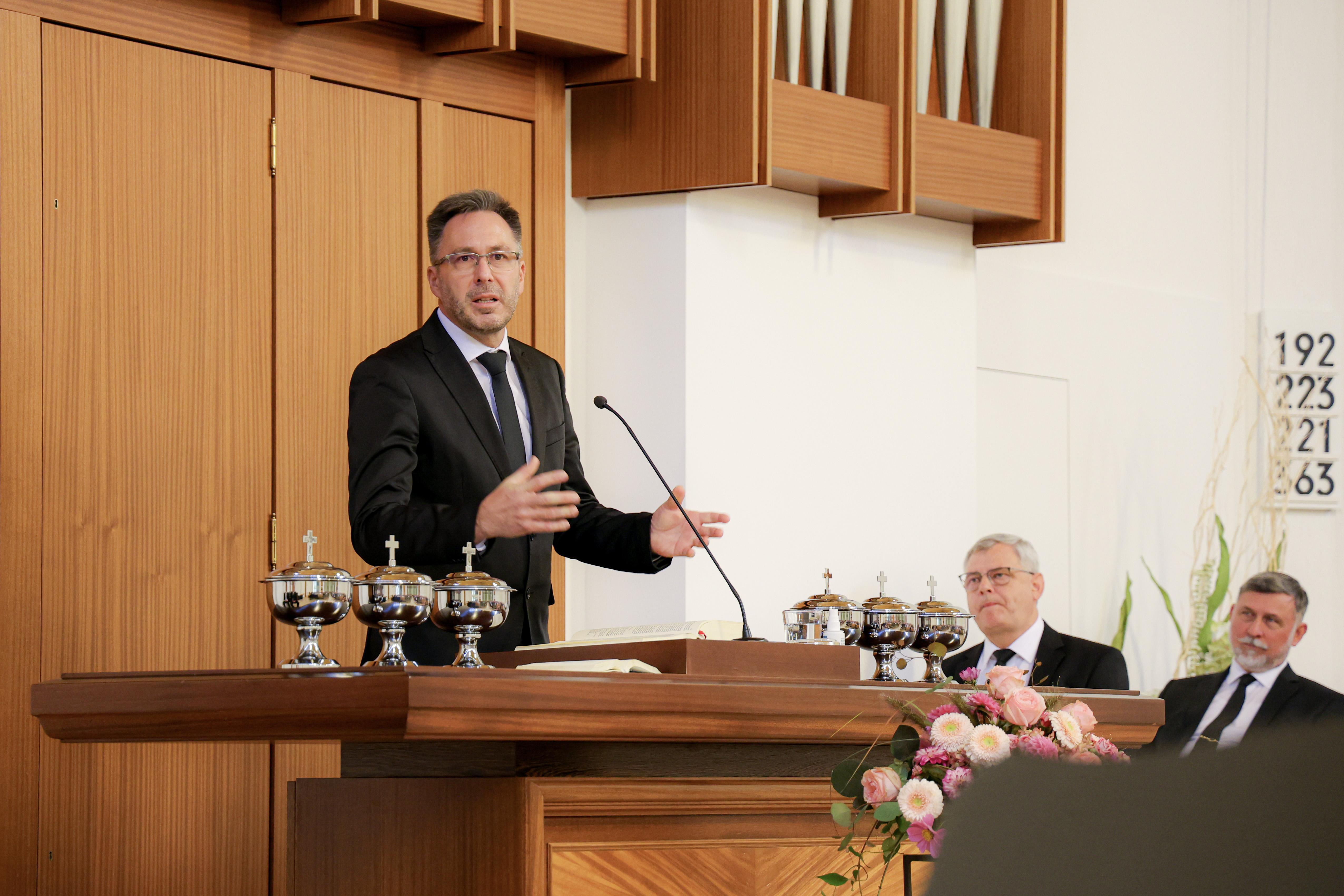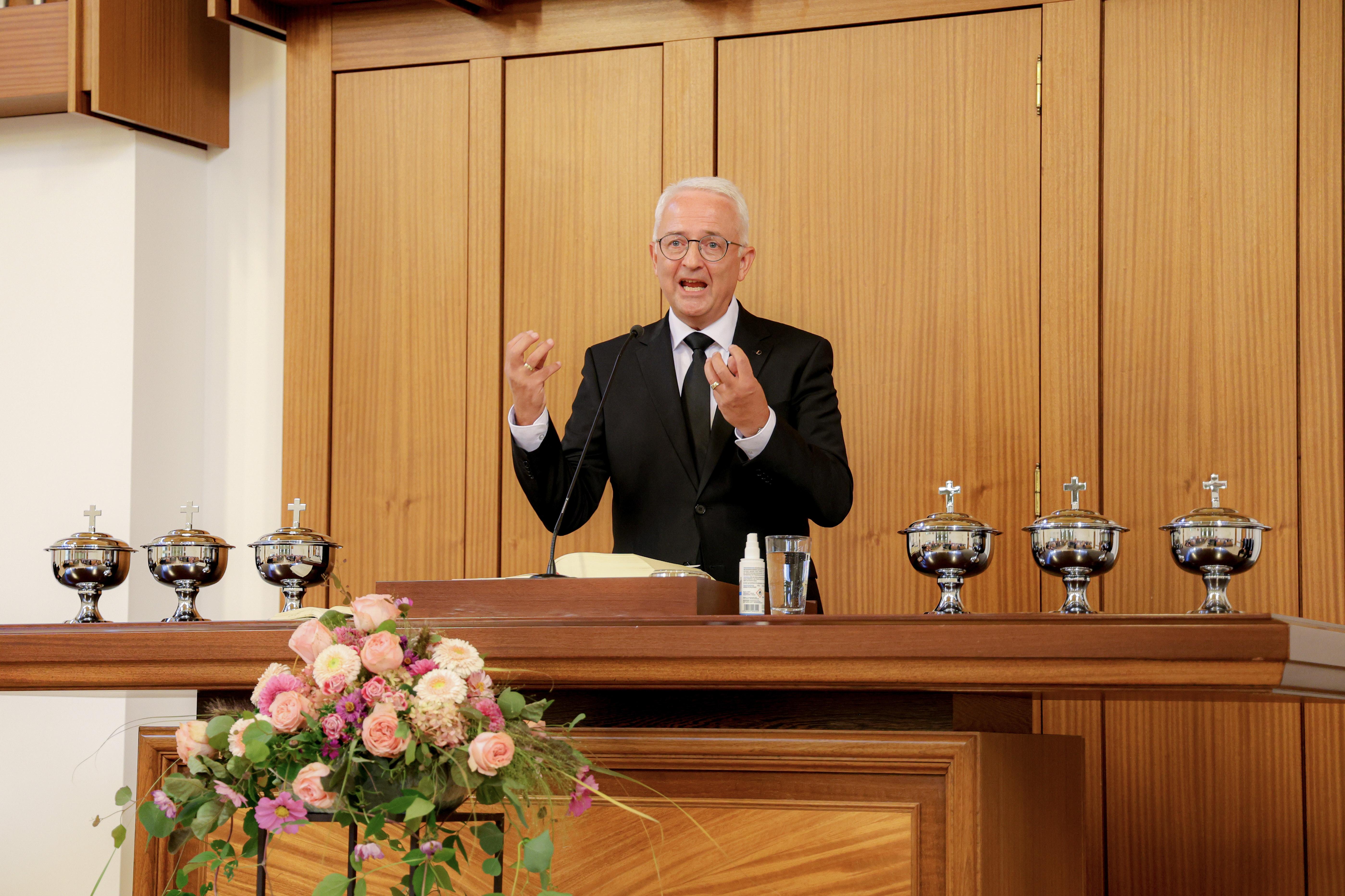 Voll war es am Sonntagmorgen in der Chemnitzer Kirche. Alle Vorsteher der insgesamt 63 Gemeinden des Arbeitsbereiches des Apostels, welcher die Kirchenbezirke Chemnitz, Erfurt, Gotha, Plauen und Zwickau umfasst, hatten bereits ein gemeinsames Wochenende verlebt und fanden sich zum Gottesdienst in Chemnitz ein.
