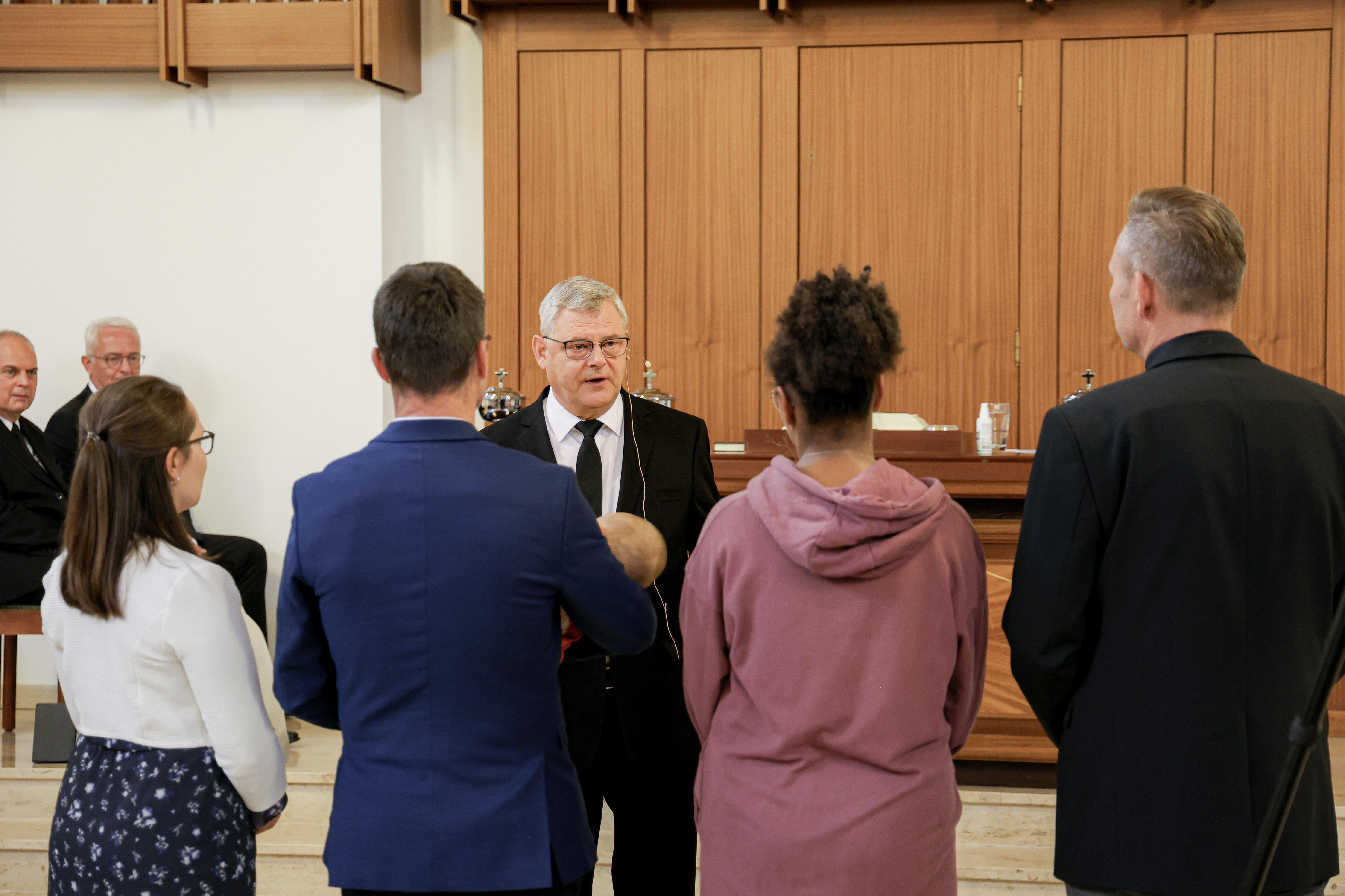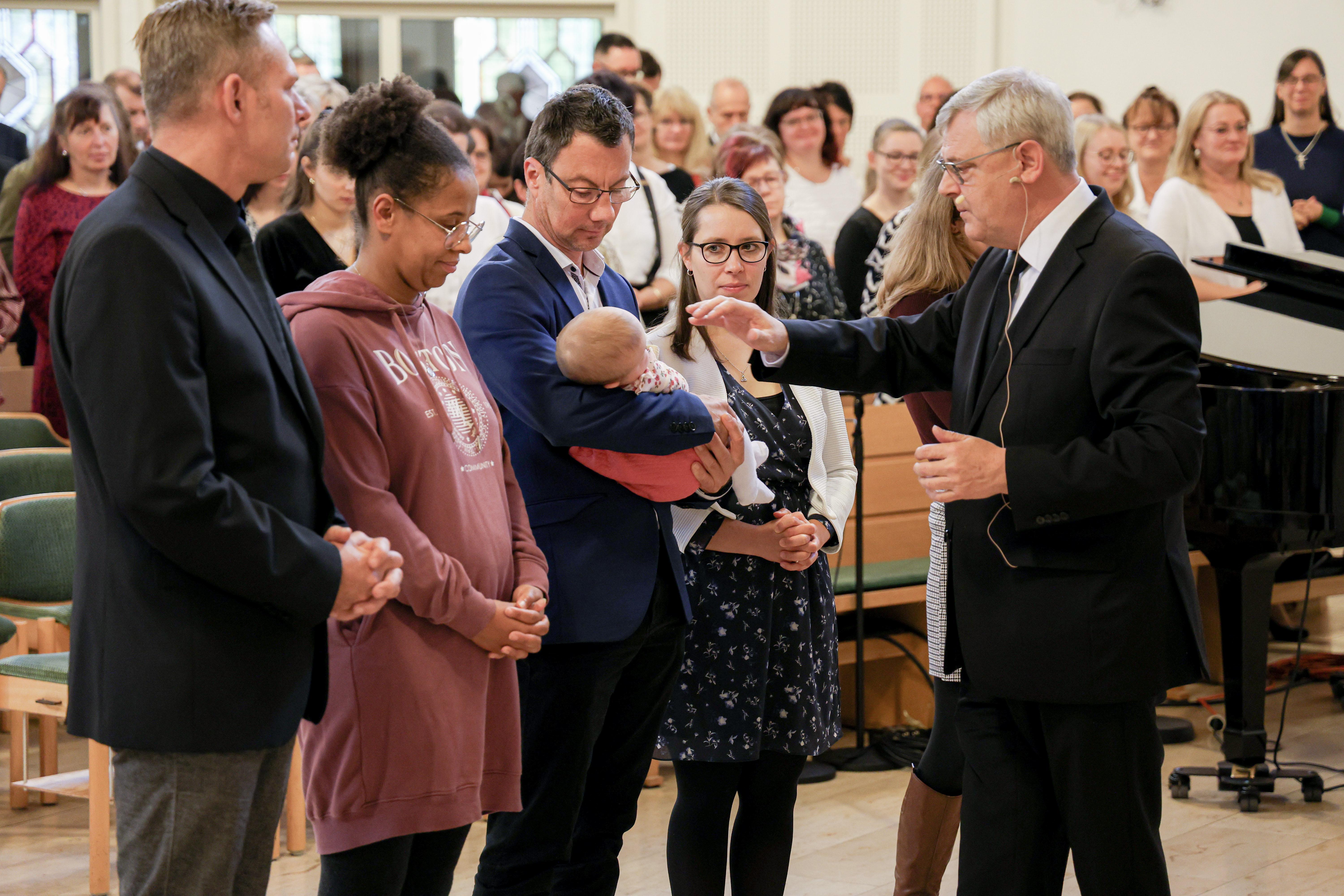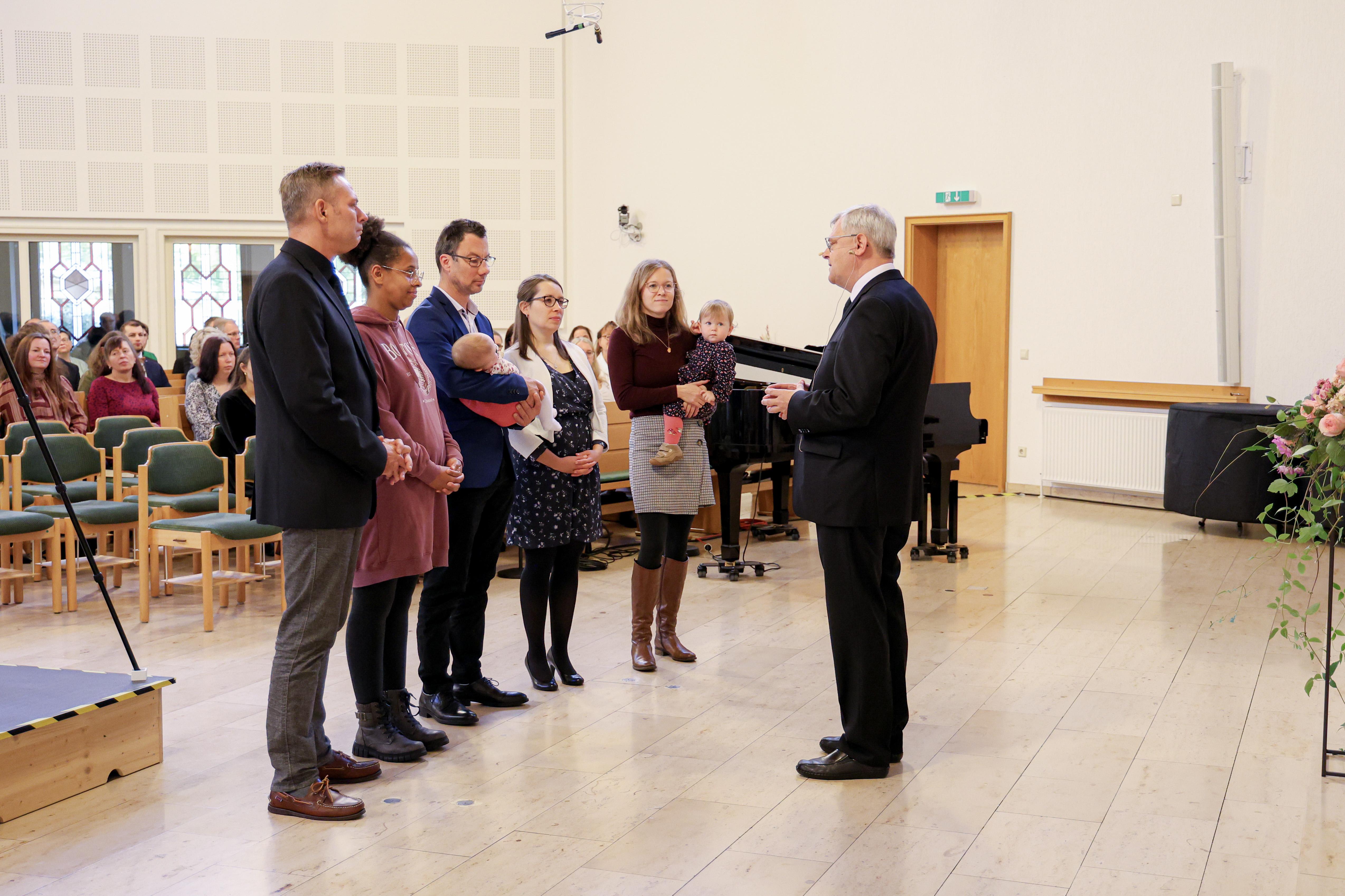Apostel Wittich begrüßte am Altar Nicole, Ruby und Felicitas. Alle drei sollten das Sakrament der Heiligen Versiegelung empfangen. Gott hat bereits durch die Taufe einen Schritt auf die zu Versiegelnden zugemacht. Mit dem Sakrament der heiligen Versiegelung wird vollendet, was in der Heiligen Wassertaufe begann: die Wiedergeburt aus Wasser und Geist. Weitere Informationen zu den Sakramenten in der Neuapostolischen Kirche: https://www.nak-nordost.de/sakramente