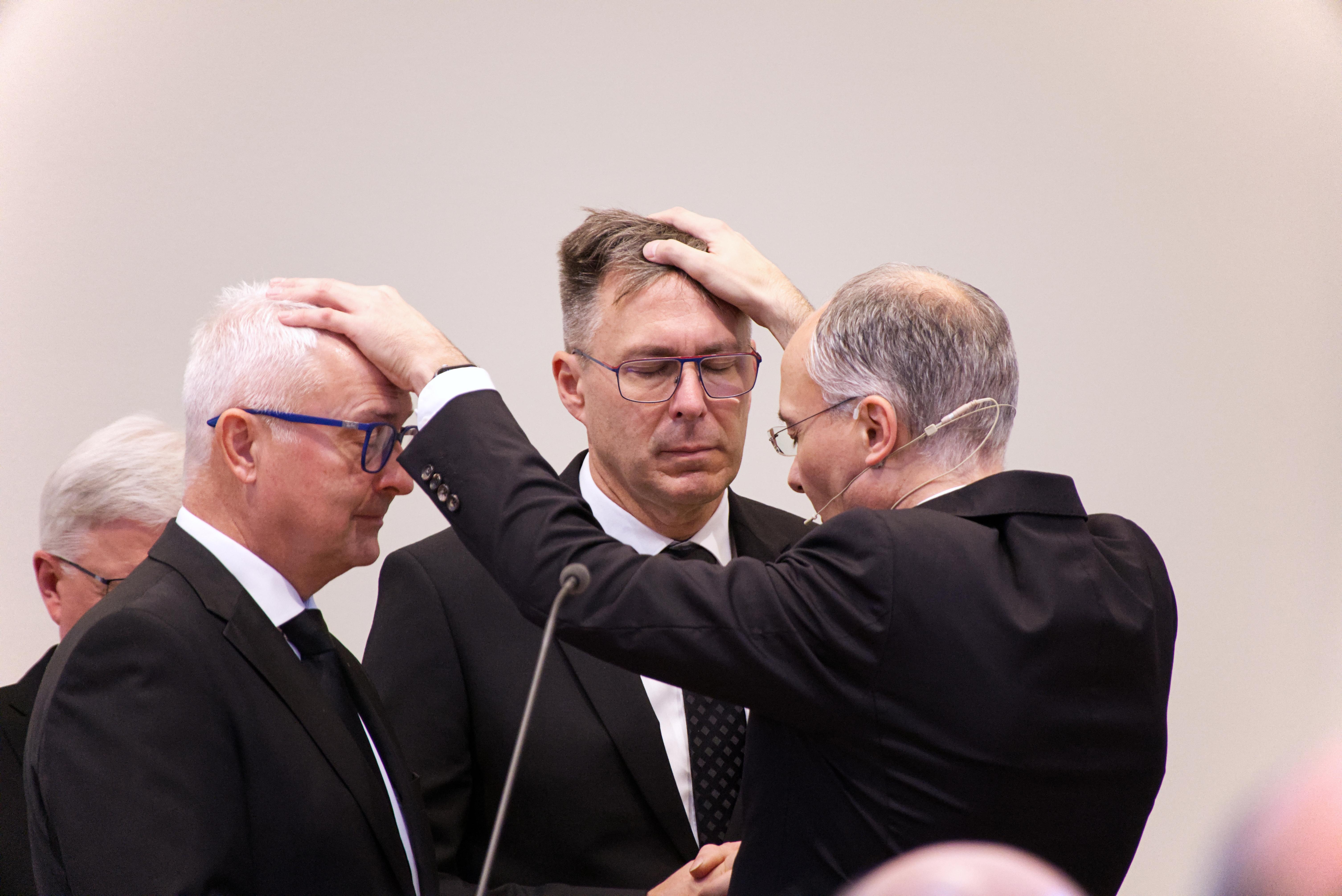 Nach dem Heiligen Abendmahl empfingen Bischof Mike Dietel sowie Bezirksevangelist Heiko Schreiter stellvertretend für die Entschlafenen die Heilige Wassertaufe, die Heilige Versiegelung und das Heilige Abendmahl.