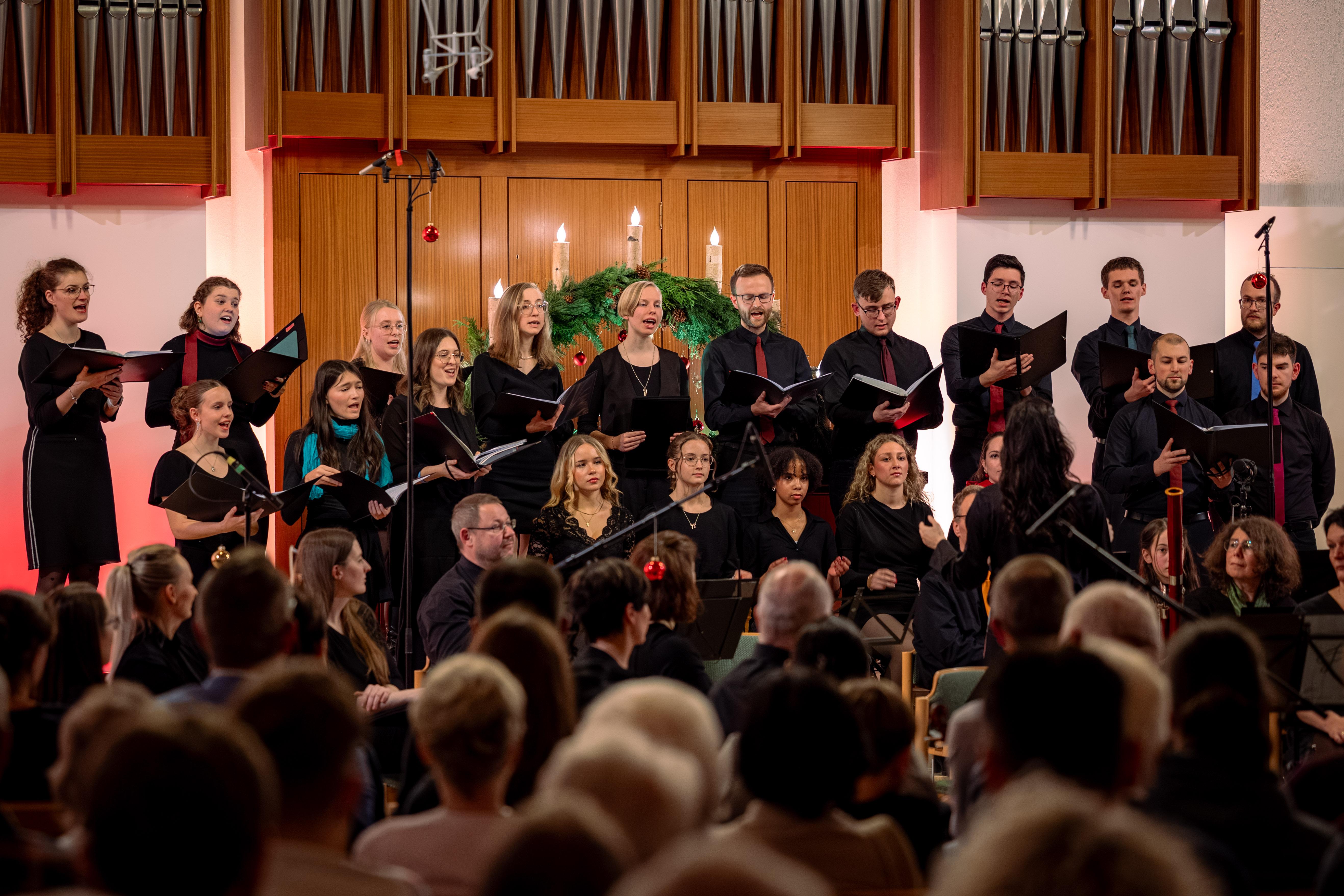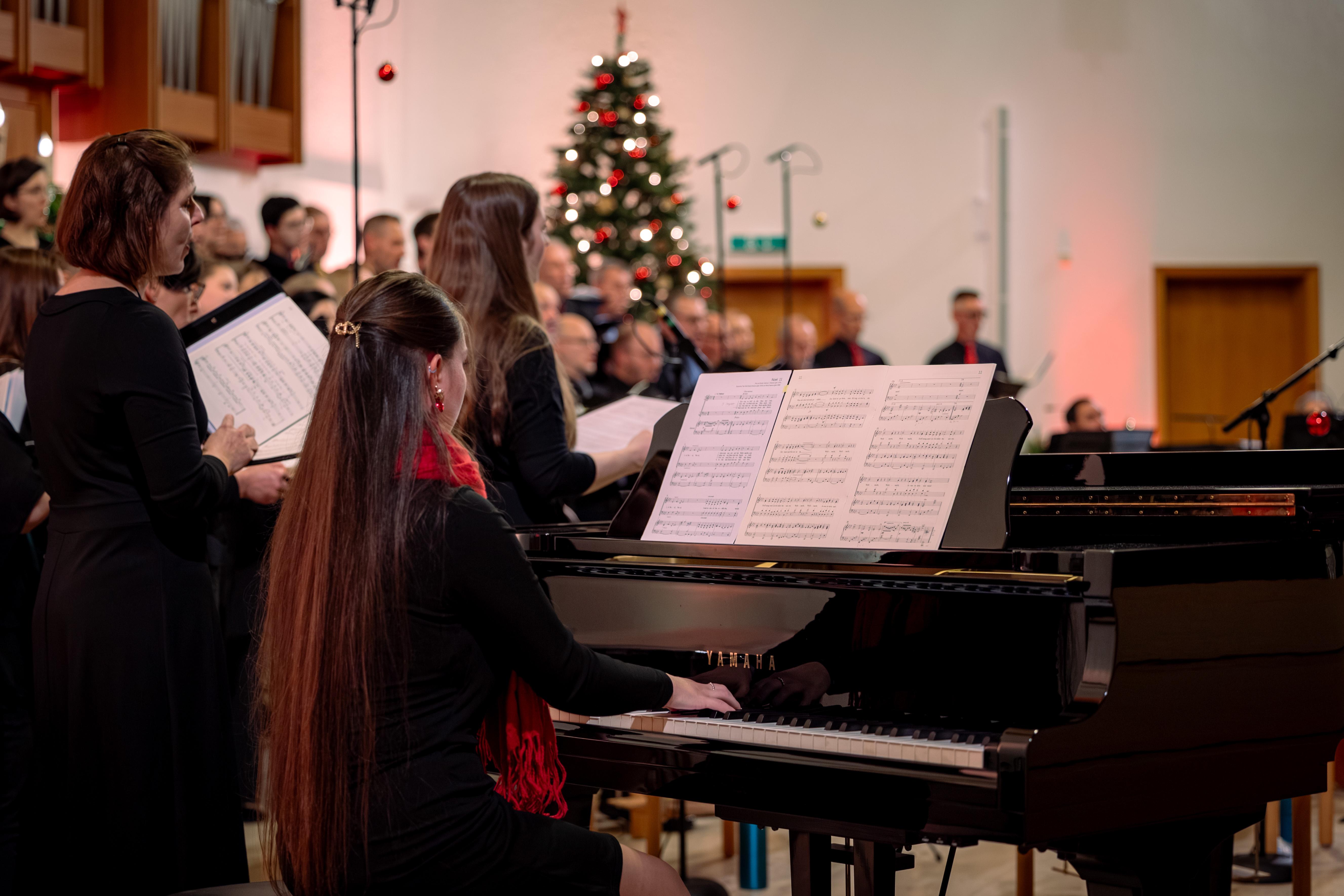 Gleich danach holten der Kammerchor und ein Klavierbeitrag das Publikum zurück, in vertraute Weihnachtsmelodien.