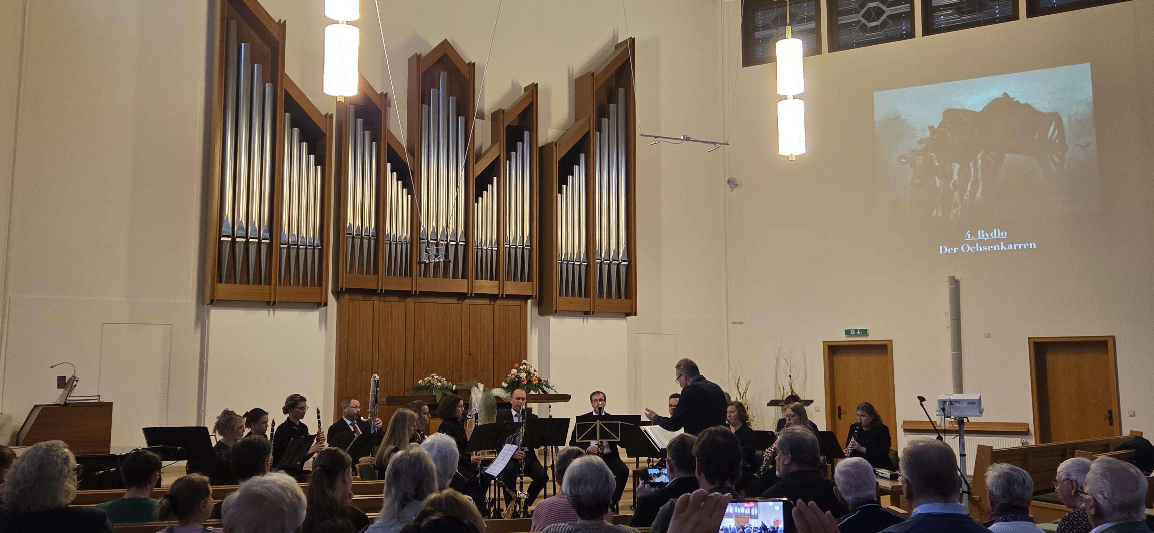 Das Ensemble musizierte unter der Leitung von Prof. Marco Thomas aus Bremen. Im Mittelpunkt des Konzertes stand die beeindruckende Vielfalt der Klarinettenfamilie. Von kleinen etwa ellengroßen Instrumenten, der Es-Klarinette, bis hin zu mannshohen Ausführungen, der Kontrabassklarinette, wurde die ganze Bandbreite vorgestellt. Besonders eindrucksvoll war das Zusammenspiel der unterschiedlichen Klangfarben, was die Vielseitigkeit dieses Instruments hörbar machte.